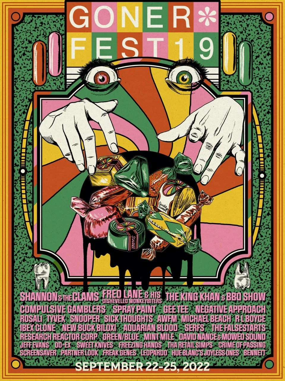 Eric Clausen’s poster for Goner Fest 21 (art direction by Moseley).