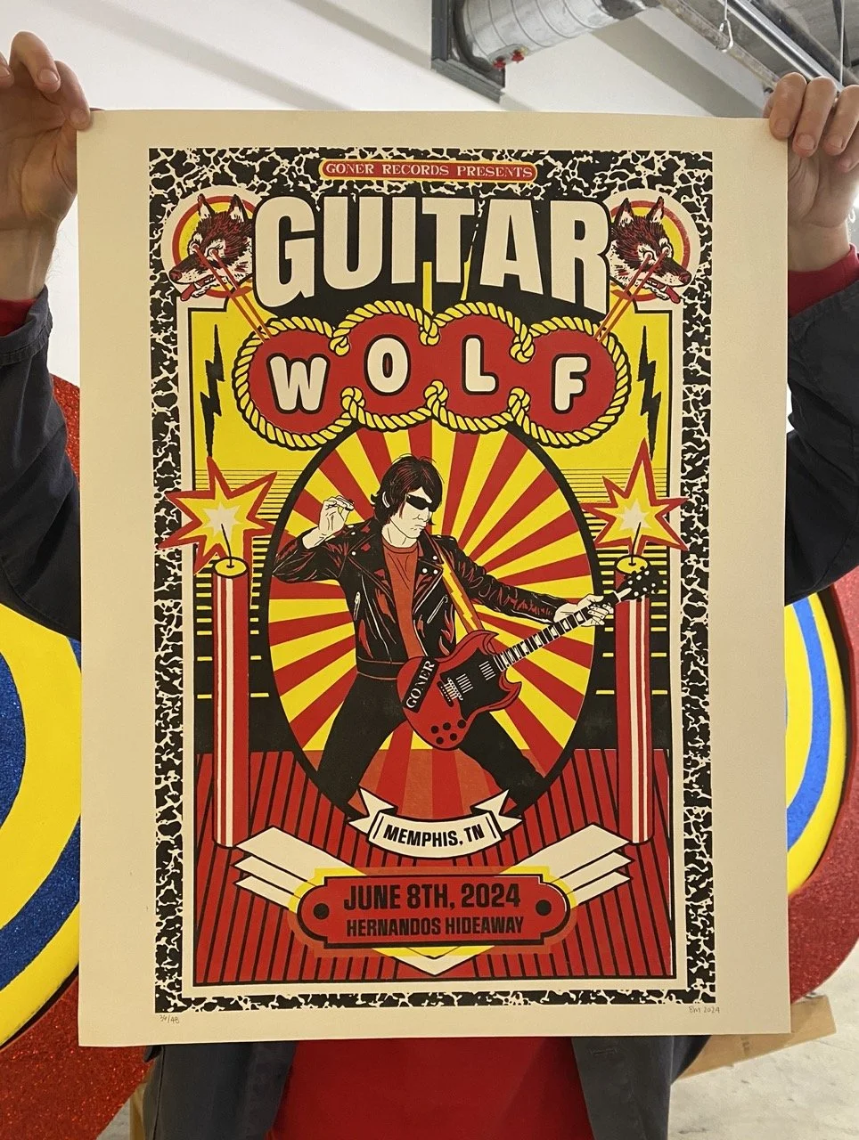 Moseley’s celebrated Guitar Wolf poster. Photo courtesy of Sara Moseley.